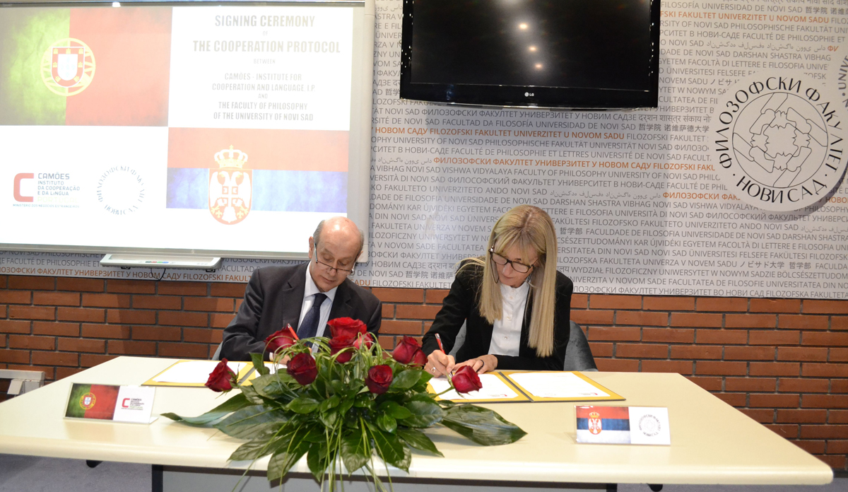 На Филозофском факултету Универзитета у Новом Саду 2. октобра 2017. године потписан је протокол о сарадњи између Факултета и Института Камоеш, којим ће досадашња сарадња ових институција бити унапређена оснивањем Центра за португалски језик на Филозофском факултету.